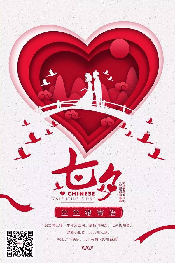 On the Chinese valentine's day, the silk fringe wishes all the lovers in the world: the bright moon shining stars, the Milky Way can hate no end. Qixi came to build a bridge, the cowherd and weaver girl forever love; Happy life is sweeter than honey; Happy Tanabata festival!