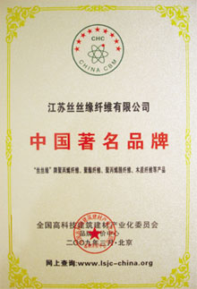 2009年3月“丝丝缘”牌系列纤维荣获“中地区有名产品”称号